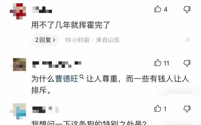 还有他穿的衣服,一件卫衣就要七千多,鞋子都是限量版的球鞋,随便一双都要好几万,网友看到后都惊呆了,说“我想问一下这狗的特别之处是?”,还有人说“为什么曹德旺让人尊重,而一些有钱人让人排斥”。